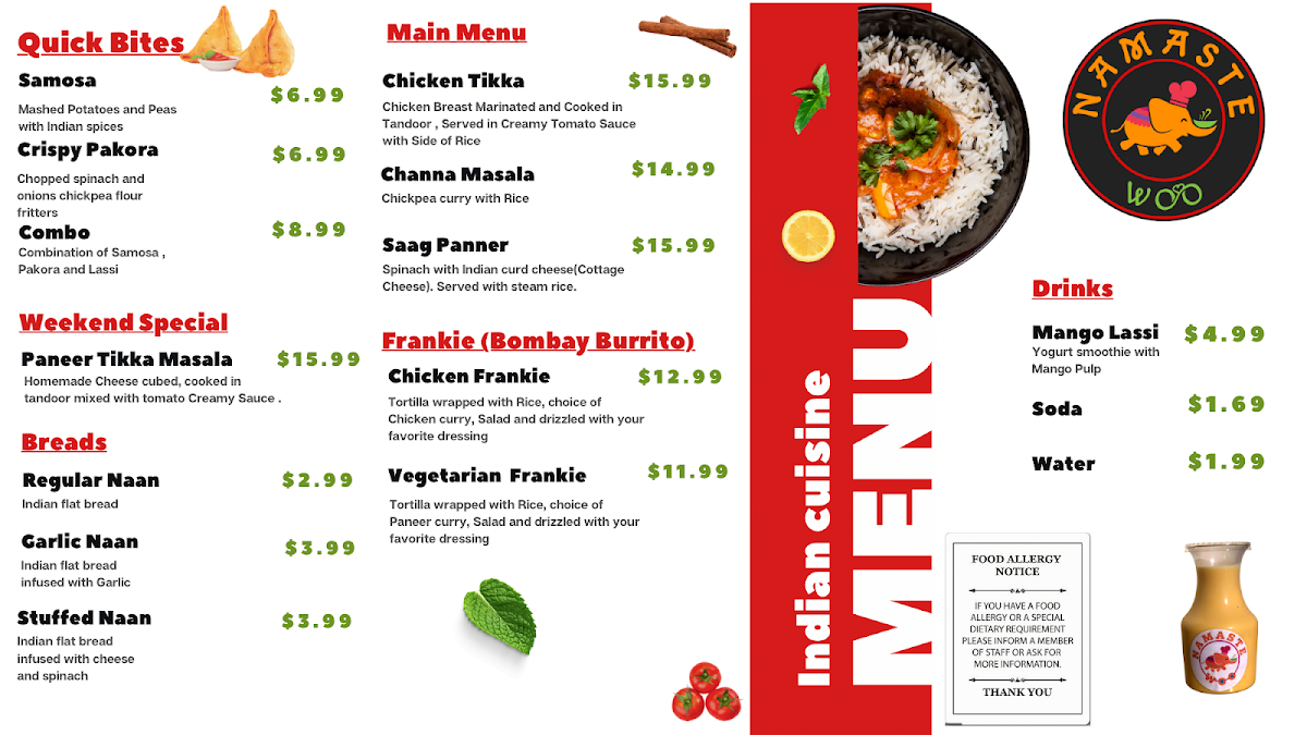 Welcome to Namaste Woo, a delightful Indian restaurant nestled in Worcester, MA. This vibrant eatery is known for its authentic Indian fare, making it a local favorite for food enthusiasts.